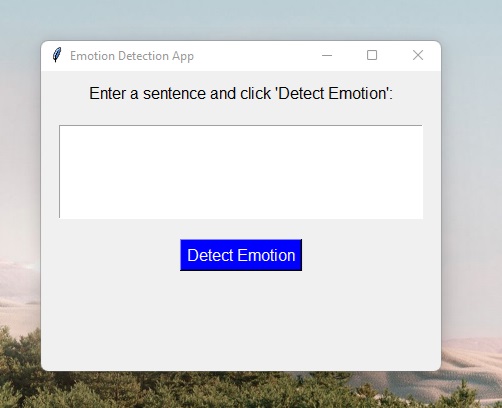 A window will appear where you can enter text, click the button, and see the detected emotion. Try entering sentences like: