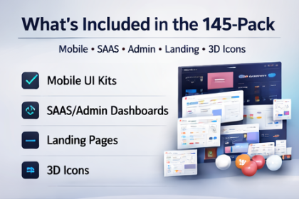What’s Included in This 145 Figma UI Kit Bundle (Mobile, SaaS, Admin, Landing Pages + 3D Icons)