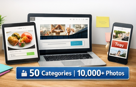 Build your content bank: A categorized HD photo library for social, websites, ads, and Canva workflows.