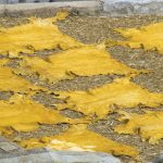 The use of explosives in the quarrying of marble is limited because of the danger of shattering the rock. Instead, channeling machines that utilize chisel-edged steel bars make cuts about 5 cm (2 inches) wide and a few metres deep. Wherever possible, advantage is taken of natural joints already present in the rock, and cuts are made in the direction of easiest splitting, which is a consequence of the parallel elongation of platy or fibrous minerals. The marble blocks outlined by joints and cuts are separated by driving wedges into drill holes. Mill sawing into slabs is done with sets of parallel iron blades that move back and forth and are fed by sand and water. The marble may be machined with lathes and carborundum wheels and is then polished with increasingly finer grades of abrasive. Even with the most careful quarrying and manufacturing methods, at least half of the total output of marble is waste. Some of this material is made into chips for terrazzo flooring and stucco wall finish. In various localities it is put to most of the major uses for which high-calcium limestone is suitable.